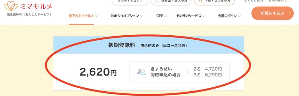 ミマモルメにかかる料金は、初期登録料金2,620円+月額料金です。