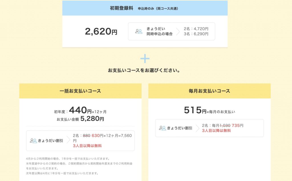 1年一括で支払う人は、月額440円。毎月支払いだと月額515円です。