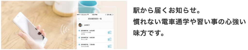 ただ注意点として、JR線やバスといった交通機関はサービスの対象外。また、あくまで改札機を通過した際に通知が届くサービスであり、駅のホームや電車内など、改札の外での状況は把握できません。そのため、お子さんの通学ルートにJRやバスが含まれる場合は、このサービスの恩恵を受けられない可能性はあります。