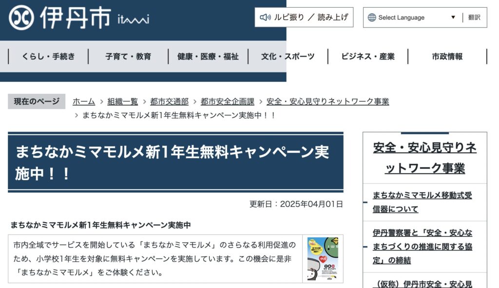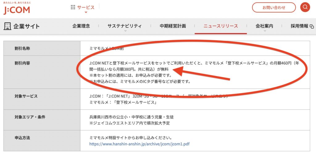 おそらく最強のキャンペーンはこのJCOM割。ミマモルメの「登下校メールサービス」の利用料が全額無料。ただし兵庫県川西市限定のキャンペーンなので注意。