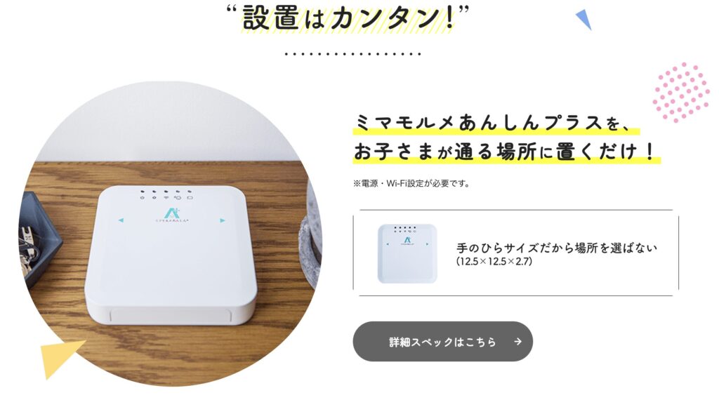 このキャンペーンは、「家庭用受信機ミマモルメあんしんプラス」のキャンペーン。通常のミマモルメの契約は、学校の門を通過すると黄色のICタグが反応して、その反応をスマホに通知するシステム。ただこれだけだと、共働きで家に誰もいないときに、門は通ったけど家に子供が帰ったかわからないということがあったんです。