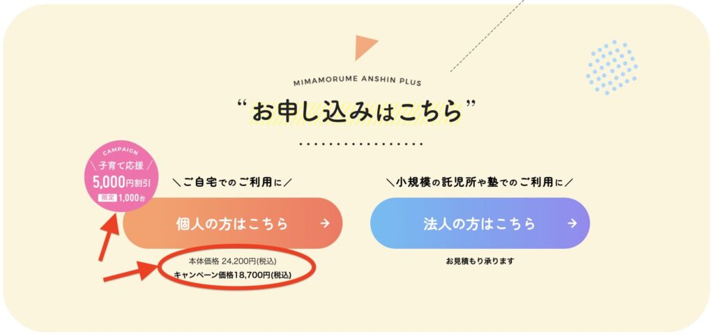 本体機器がそもそもそこそこするので、共働きじゃないママさんはこれは必要ないですかね。なので共働きのママさんだけ家庭用受信機を買うなら5000円OFFにしてもらいましょう♪