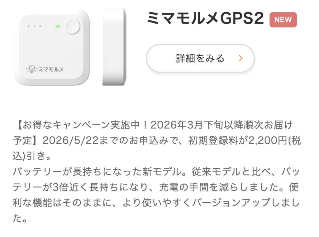 ミマモルメはうちの子供2人に持たせているんですが、契約前にキャンペーンはないか色々チェックしてました。ので書いておきます♪